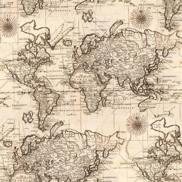 Old Map WALL MURAL, World Map Wallpaper, Vintage Marine Map of the