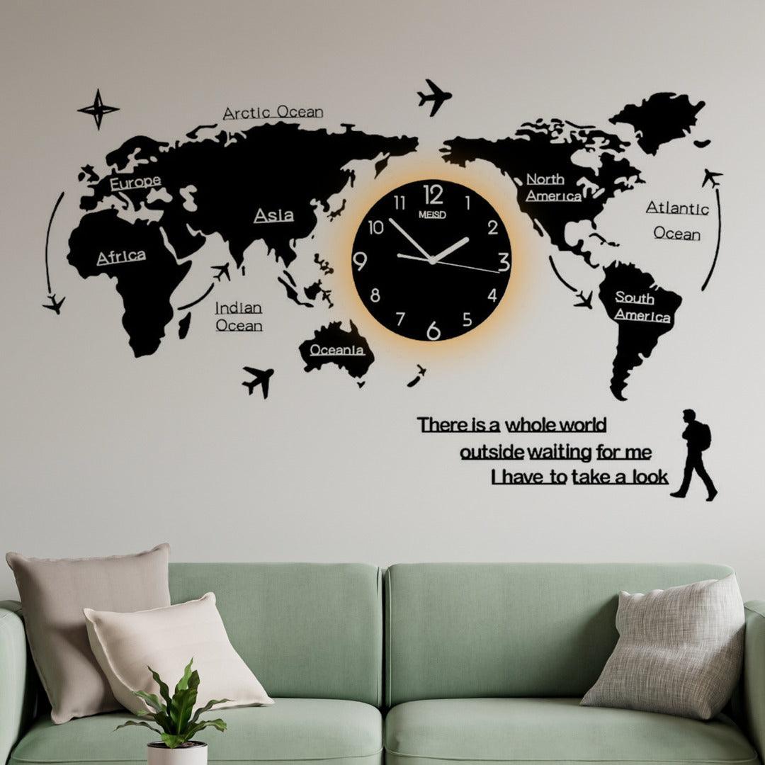 DIY 3D World Map Acrylic Wall Clock | Multicolor Wall Decor